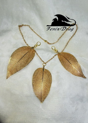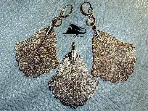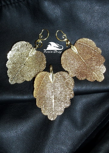 Кулон и серьги "Натуральный позолоченный лист" ручная работа и авторские украшения дизайнера Fenix Drag.