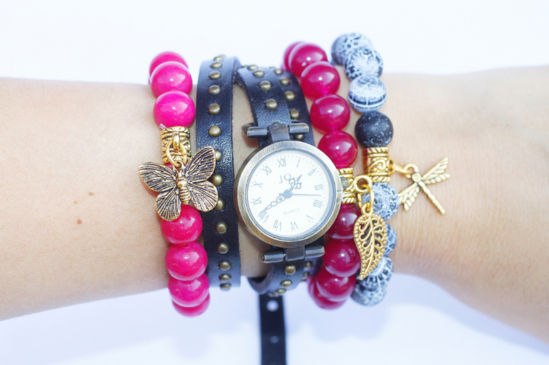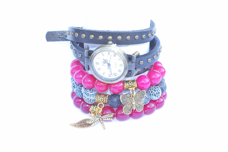 Яркий комплект из агата и кварц с кварцевыми часами на длинном ремешке