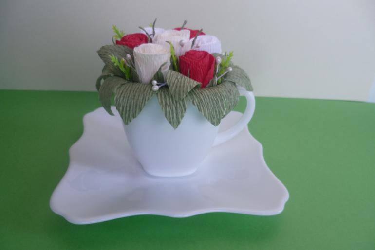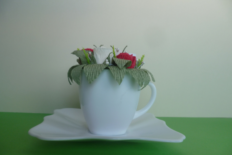 Я эту кружку делала парящей, но через полчаса она успешно отвалилась. Я не знала куда её деть и поэтому посадила в нее мои непутевые розочки.