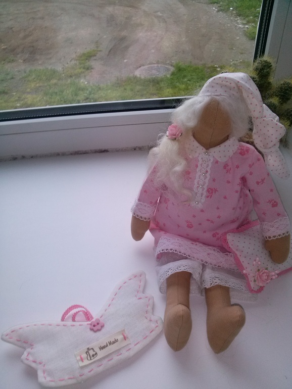 Ой, такая лапулечка , нежненькая такая хорошенькая Я тоже хочу такую сшить все смотрю смотрю на работы девочек вдохновляюсб так сказать Одежду вобще не умею шить а ведь ее еще пориодеть нужно Я свою первую сшила на одном дыхании только с платьем помучилась Шейте, конечно у вас это хорошо получается Удачи вам в этом начинании!