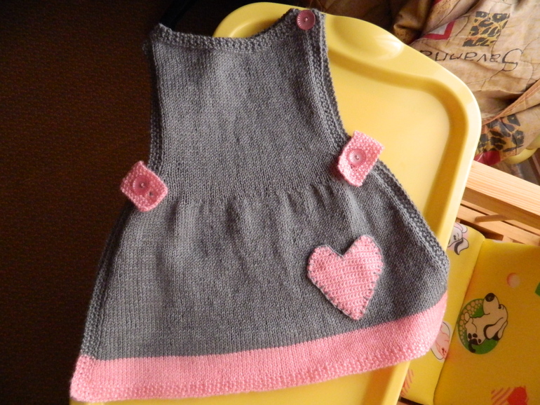 Это фартук-платье, которое с взрослением ребенка становится фартуком-туничкой =) спинка и перед отдельно вяжутся и не сшиваются. Крепление вот только на талии на лямочках с пуговками (ну и одно плечико). Мерила на дочку — отлично смотрится, только внутрь закручивается, но я почему-то надеюсь, что после стирки это исправится. Нижний закручивающийся край получилось распарить утюгом, а вот боковые части — никак пока (( Ссылочка на описание, если вдруг захочется - http://www.megera.org/?p=1090 =)