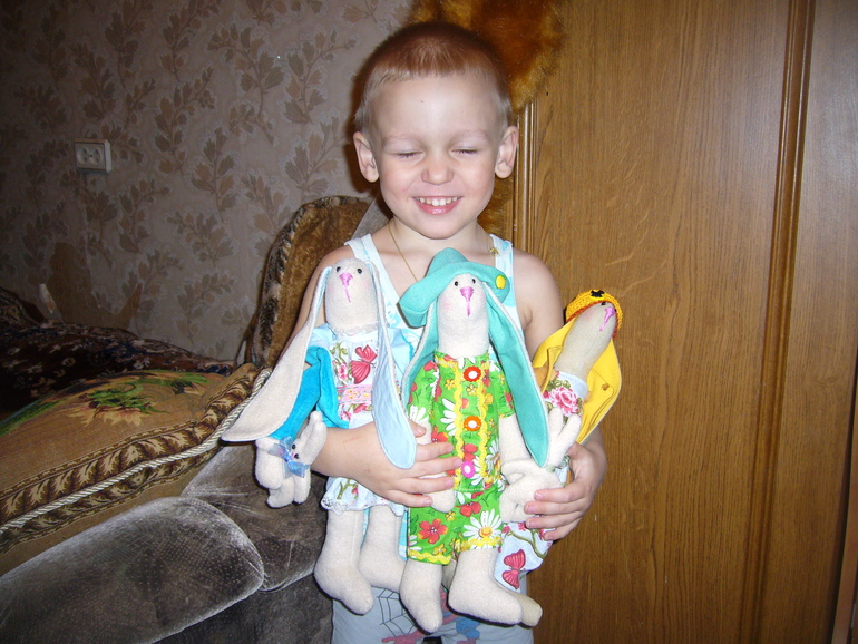 Такие интересные заи ) Это совсем не то, что шаблонные магазинные мягкие игрушки. Скорее всего, ваши творения стали любимыми спутниками детишек тех девочек, которым вы их отправили ))) Ведь вещь, сделанная с душой своими руками, ценится намного выше заводской !