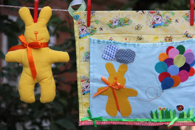 Наташа сказала,что кармашки должны быть горизонтальными,на одном из карманов должно быть изображение зайца и отдельно попросила сшить такого же зайчика такого размера,чтобы из кармана ушки выглядывали,это в принципе и все пожелания...и тут моя фантазия разыгралась:))))Если учитывать то,что кармашки шились для дачи,соответственно должны быть с летней тематикой,вот и сотворила я их в летне-дачном стиле:)В общем судить вам:)Если нравится,пишите в комментариях,мне будет очень приятно:)
