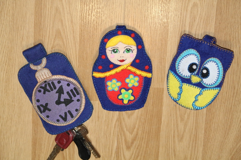 Так я начала и сшила 3 ключницы, идея была одна и та же, только разные так сказать внешний вид. Для себя «сапожника» я сшила совушку, ну такую милую….для мужа часы, и просто идея была сделать ключницу в виде матрешки. Ее я подарила подруги свекрови, но сфоткать успела) Сразу скажу весчь не совсем практичная ( но можно стирать до бесконечности, вот только это не та штуковина про которую сразу вспоминаешь при стирке.