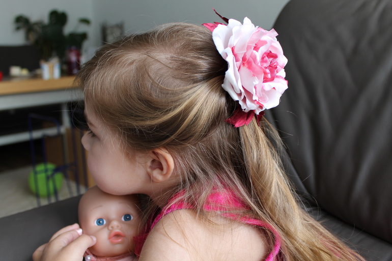 Давно делала, очень недовольна окраской, пока лепестки мокрые были - хорошо выглядело, а высохли-переход слишком резкий стал. Отложила цветок в дальний угол, а теперь подумала: почему бы и нет... Как всегда на моей верной модели....