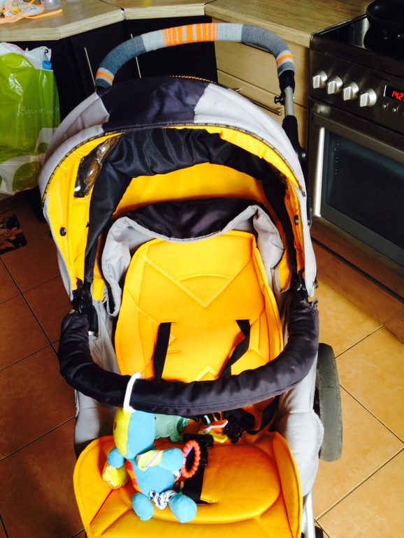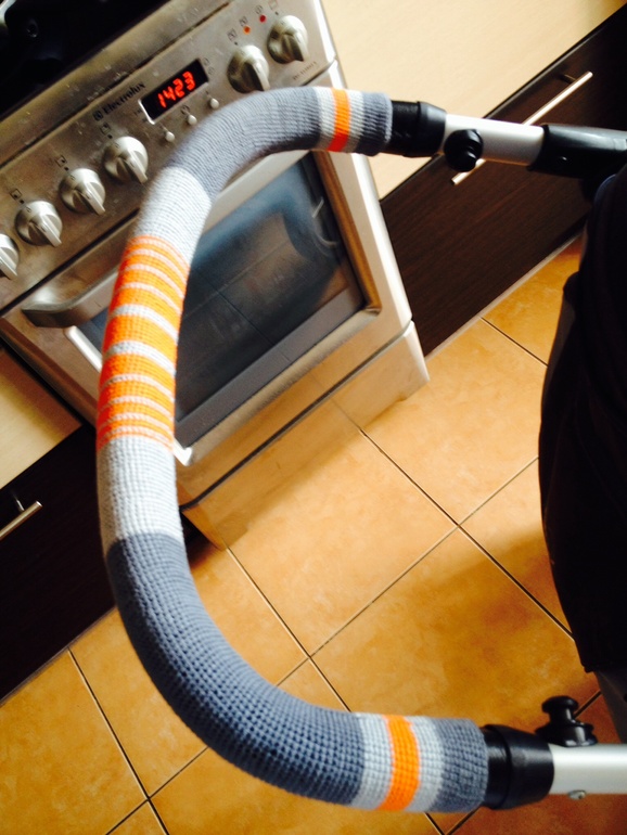 У коляски очень сильно обтрепалась ручка и у меня возника идея, связать оплетку для ручки. Вот что получилось.
