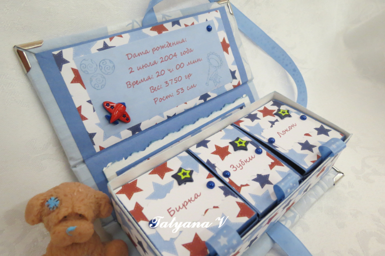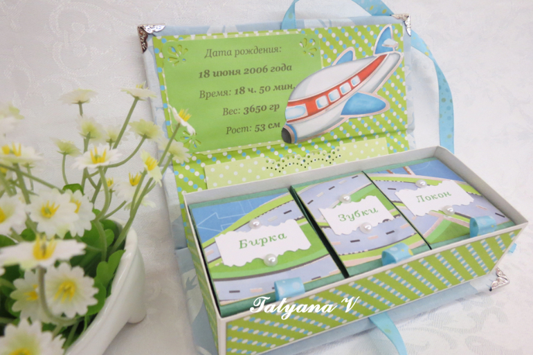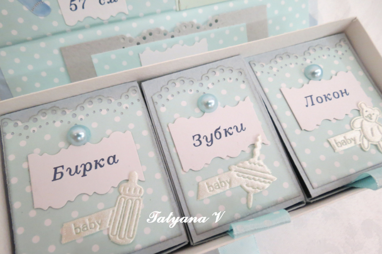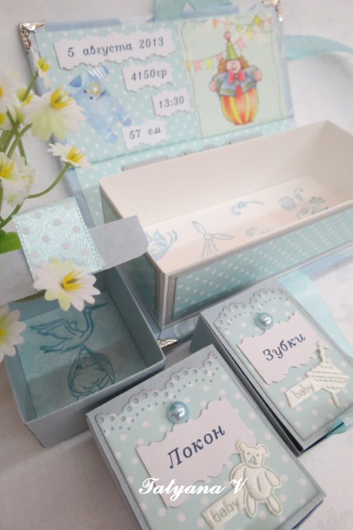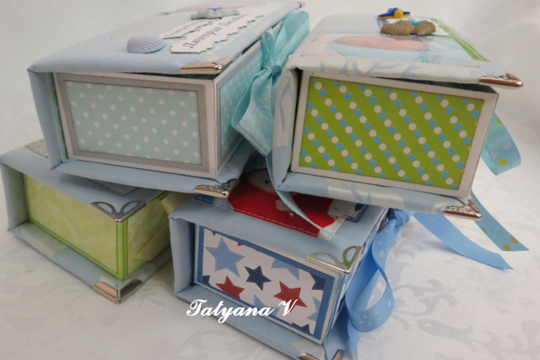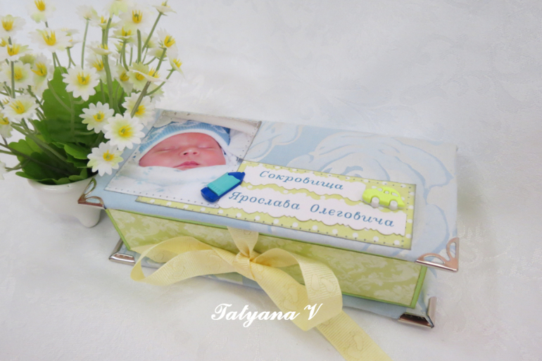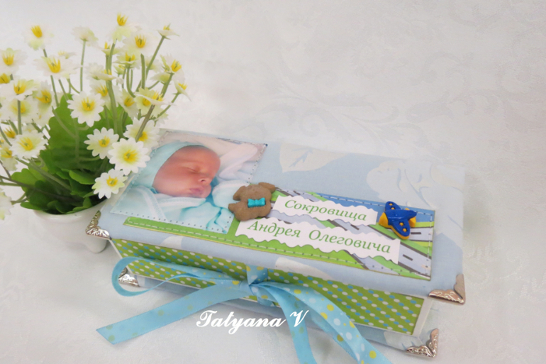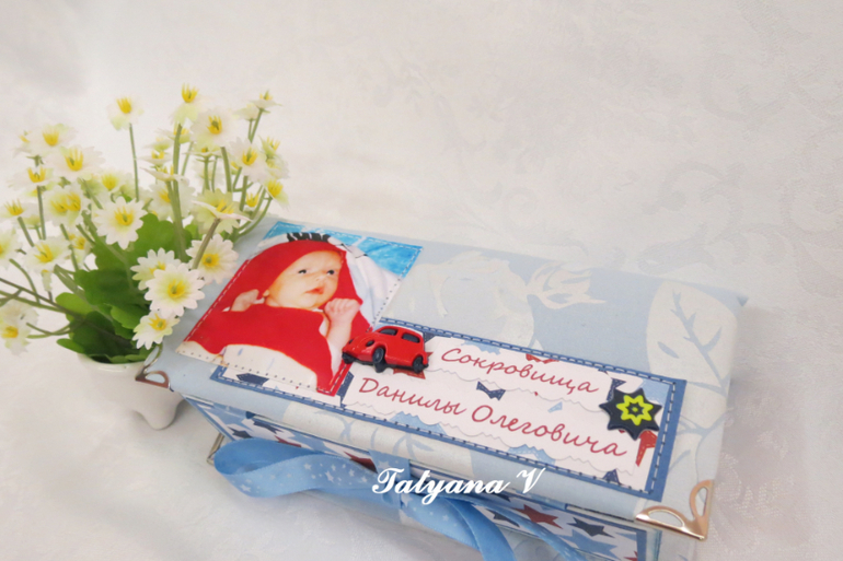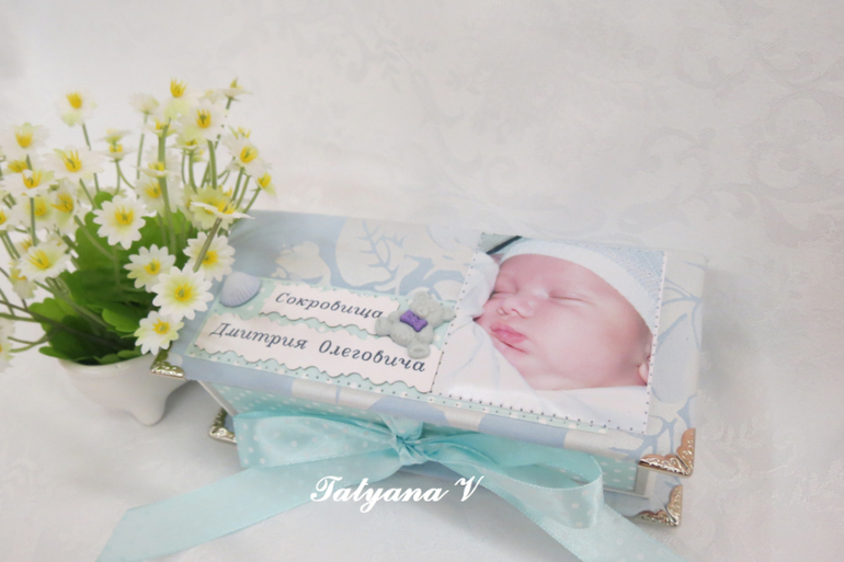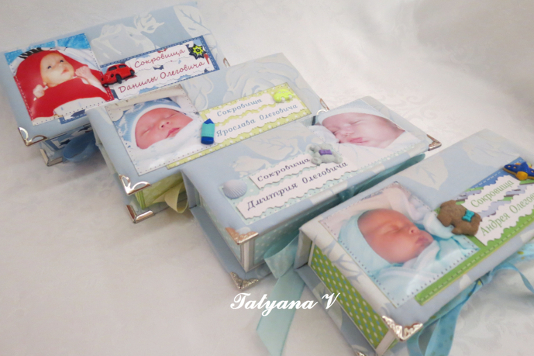 СкрапбукингОбратилась ко мне очень приятная девушка сделать коробочки "Мамины сокровища" для мальчиков. Оказалось у нее 4 сыночка. Главное ее пожелание было сделать коробочки с фото мальчишек в возрасте 1-2 мес. и такой надписью.