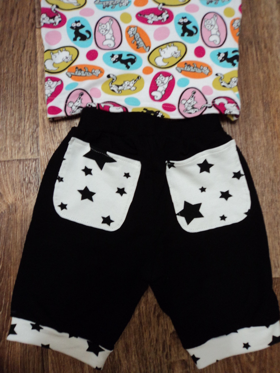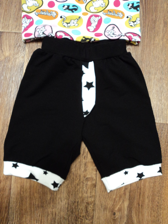 Звездный футер из остатков (рада что хоть куда то вставила). Вообще к шортам будет белая футболка.