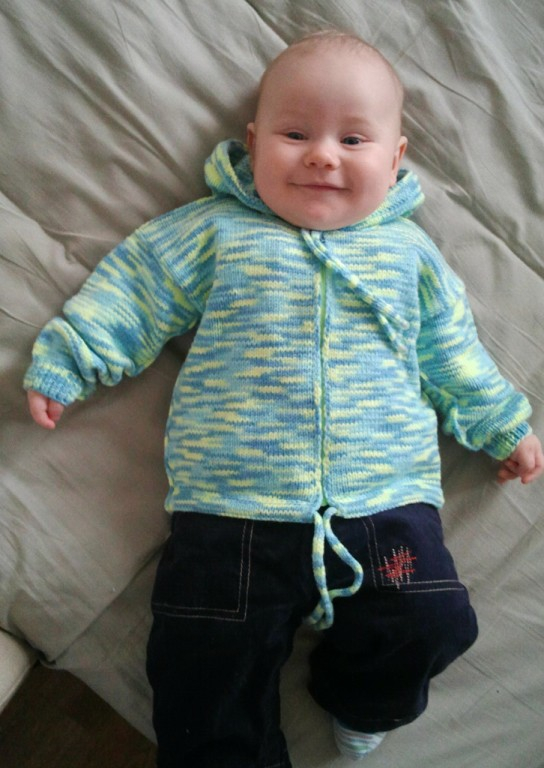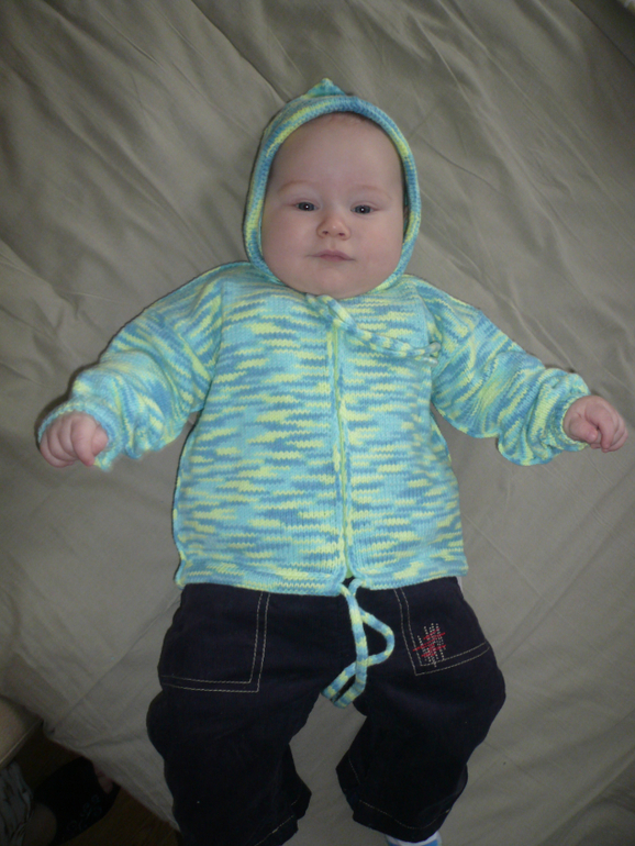 Кофточка очень понравилась!!! вроде просто, но смотрится здорово!!! а какие ниточки ? Мой в этом возрасте тоже любил завязочки мусолить...