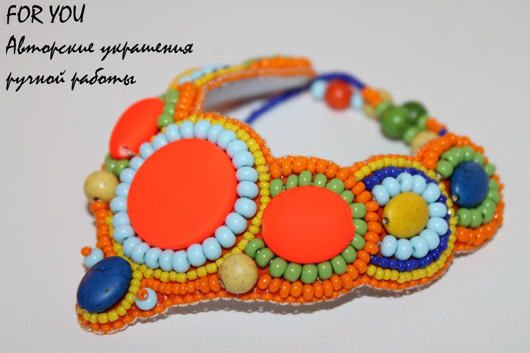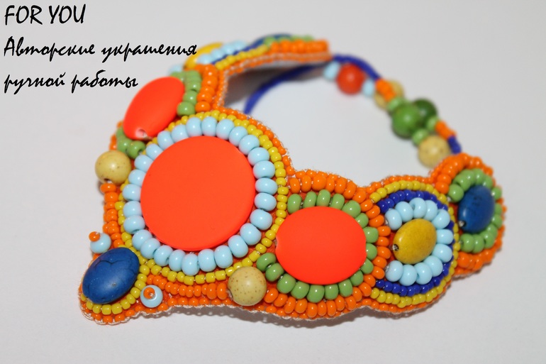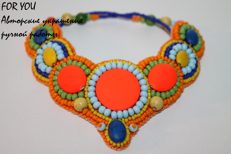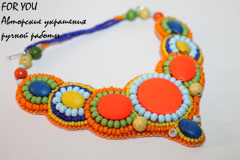 Колье из чешского бисера бархатных оранжевых бусин и разноцветных бусин говлита.