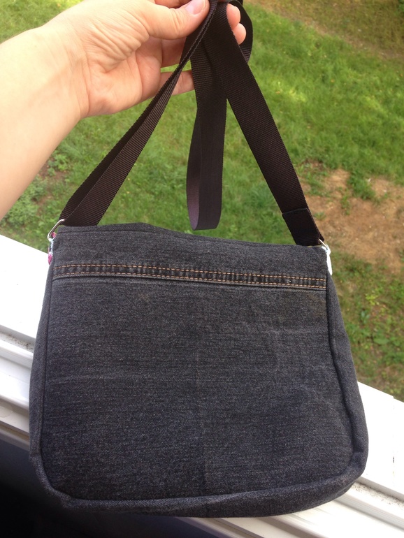 Шитье одежды, выкройки, ремонт одежды, шторы, швейные машины (уже приобретенные)Купила джинсы, бросила в машинку и они полиняли. Да не просто так, а вот как были согнуты, так и получилось две светлые полосы по всей длине штанин. Носить такое конечно нельзя, и я обрезала их) вот из линялых штанин сумочка и получилась) дополнительно купила только два метра ременной ленты) остальное нашлось в хомячьей норе))