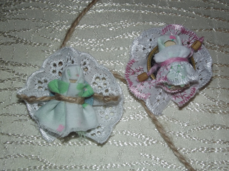 Это я уже так решила! А делали раньше куклу по правилам без иглы и ножниц, ткань (ношеную отцом или матерью) рвали и перевязывали нитками. А для оберегов ткань нужна новая, а такую вряд ли порвешь... только резать.