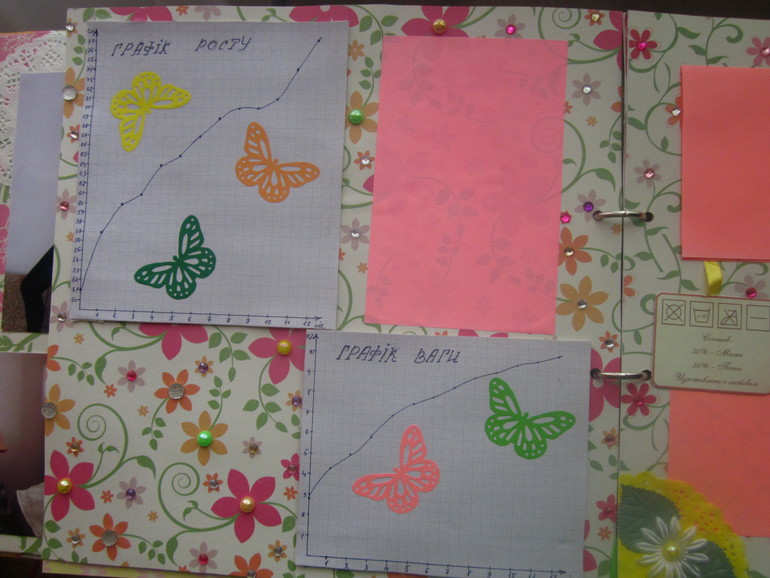 Далее график роста и веса, рисовала сама, на милиметровой бумаге ставила точки, а потом старалась их красиво соединить, испортила несколько листов, пока не получилось что то более-менее нормальное