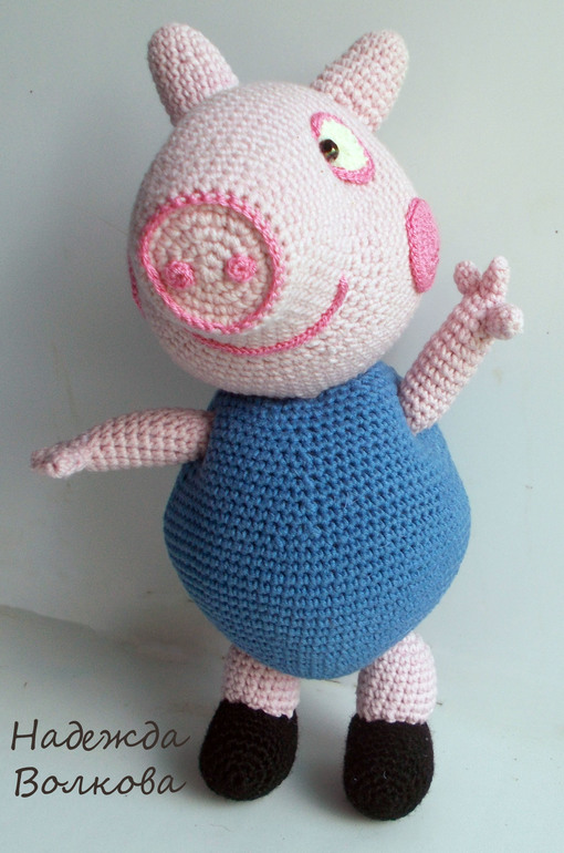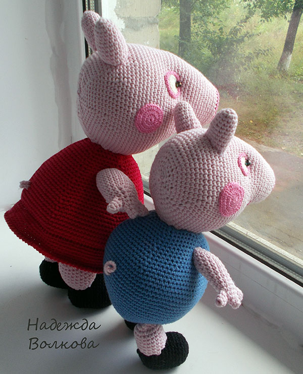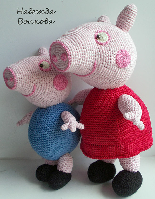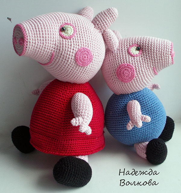 пальцы только у Джорджа другие, т.к тот Джордж маленький был, ему никак было пальцы не связать нормально и Пепу переделала чтоб из пряжи такой же толщины как и Джордж была, а то в описании просто нить в 2 сложения берется для Пепы, мне так не понравилось в тот раз
