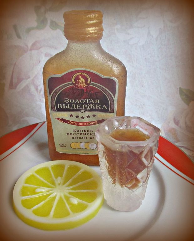 Лена, ну как всегда супер! Стопка с коньяком просто как настоящая, но этому я уже не удивляюсь. А вот что в бутылке даже как будто уровень видно, линия жидкости — это поразительно