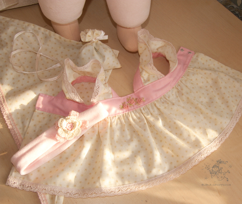 Еще одна куколка в пришивном комбезике) Вся натуральная - шерсть и хлопок. Наряд ванильно-розовый - ну чем не карамелька?