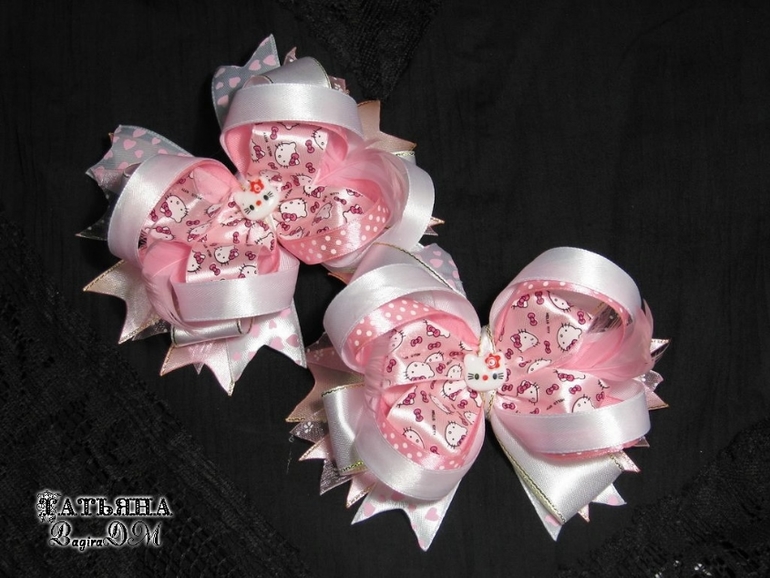 Ну и отойдем от школьной темы) Эти американские бантики Китти давно мечтала сделать своей доче))) Мечта сбылась!)) Размер: 12 на 9 см, крепление заколка-уточка 7,5 см. Большие и очень нарядные, ребенок в восторге!)