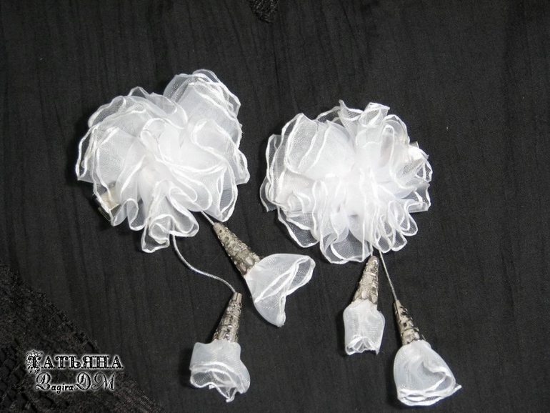 Вот такие маленькие с висюличками, очень нежные) Диаметр 6 см, длинна с колокольчиками - 12,5 см, заколка-уточка 4,5 см.