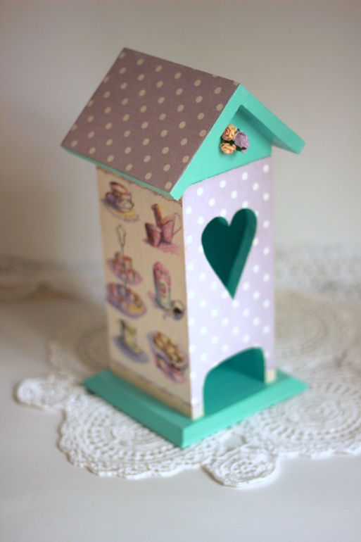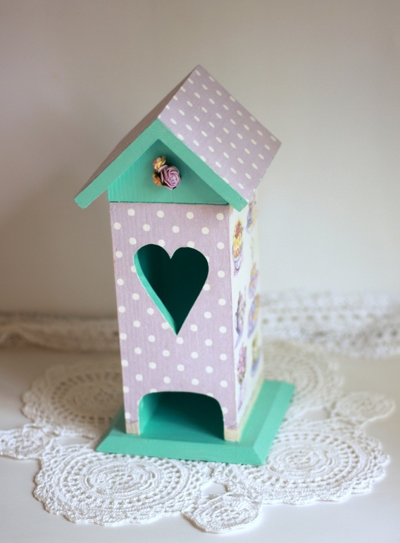 ДекупажСовместный декупаж "Чаепитие" с Яниной Монаховой продолжается, вот мой домик подоспел. Делала его высунув язык, домик - сложная для меня форма. Такой он у меня получился сильно-мятный, довольно высокий и увесистый)))