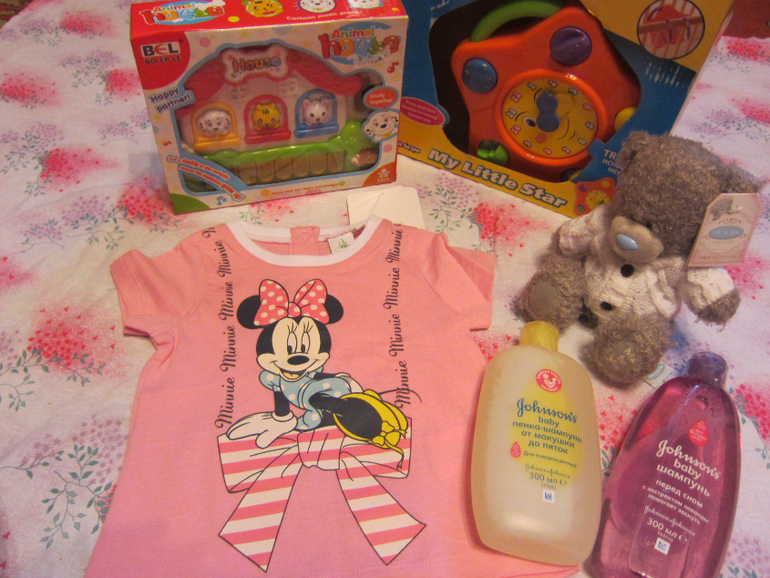 Маечка на вырост прото чудесная!А еще Теддик очаровательный и детская косметика Джонсонс Бэби.
