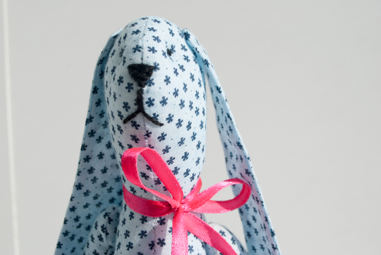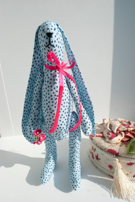 Обычно в таких расцветках видела только тильда мишек, а зайки обычно однотонные и нарядно одетые. Грустно романтичный зайка сделан на подарок сестре =)
