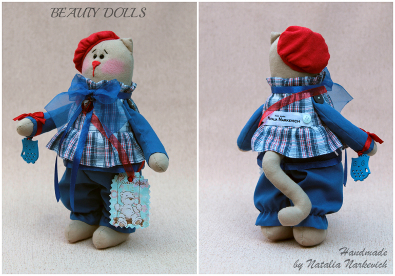 Высота кошечки 20 см. Лапки подвижны, на пуговичном креплении. С удовольствием делюсь с вами фотографиями)