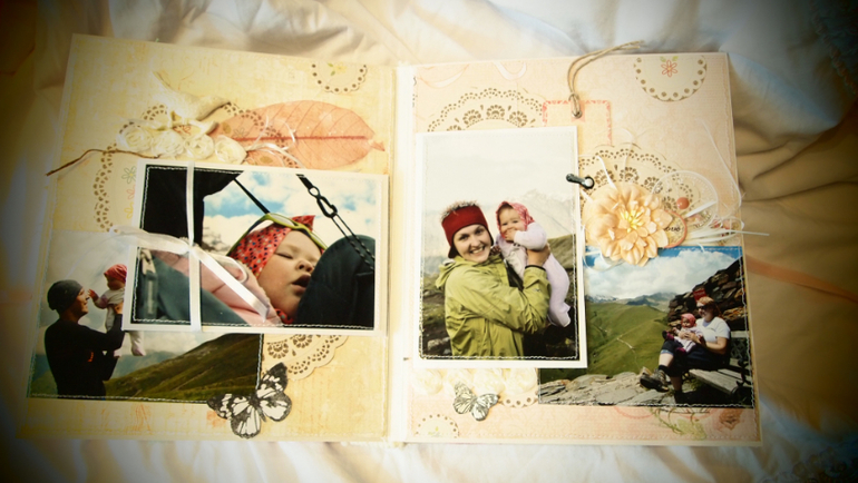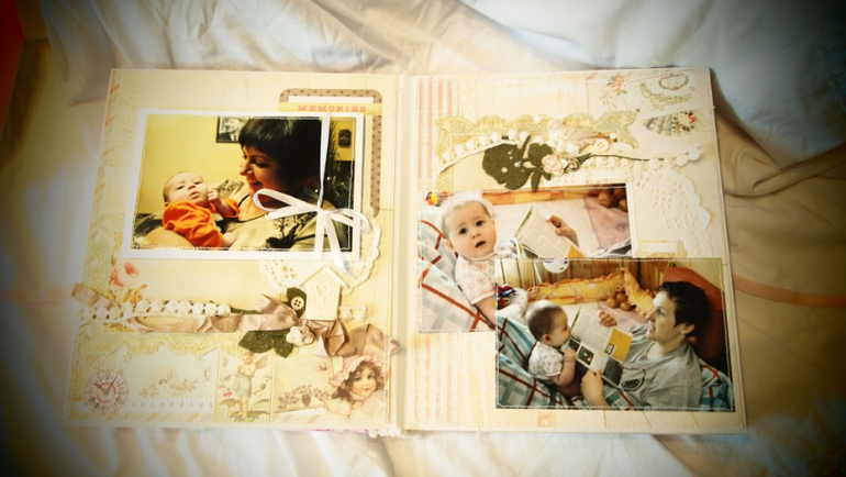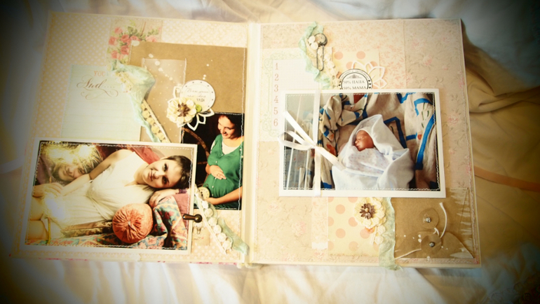 СкрапбукингЕще хочу вам свой альбомчик показать. Сделан на заказ для девочки Машеньки. формат 22на 26 на 14 стр, очень удобный имхо формат для альбомчиков. Альбом сразу с фотками.Вместилось около 50+есть конверт для доп фото. Есть местечко для теста с двумя полосочками, диска, бирочек, волосиков, карточки для записей о малышке, достижений, роста-веса. Мягкая обложечка, ткань коллекции тильда.Аккуратно много фото)))