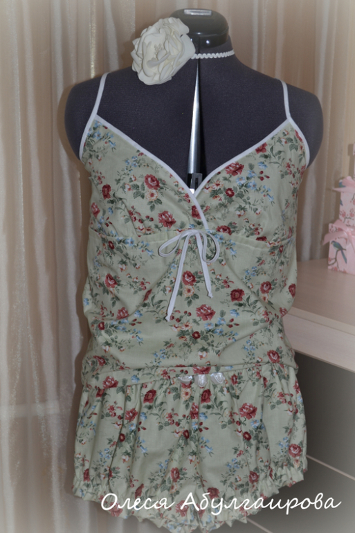 Шитье одежды, выкройки, ремонт одежды, шторы, швейные машины (уже приобретенные)Вот такой вот кокетливый и романтичный домашний комплект у меня получился: маечка + блумерсы