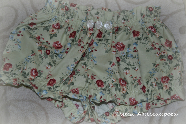 Вот такой вот кокетливый и романтичный домашний комплект у меня получился: маечка + блумерсы