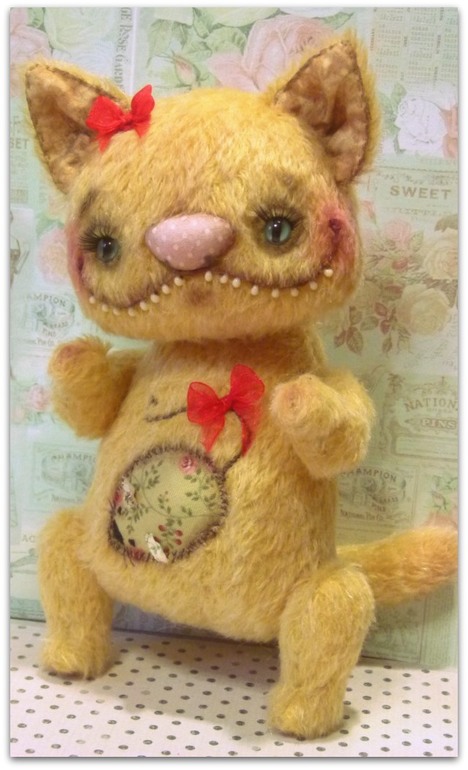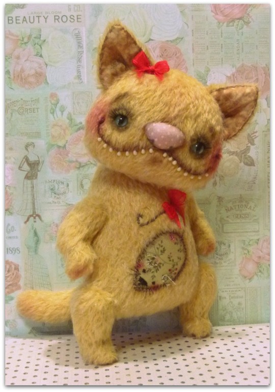 Муська сшита из немецкого мохера, 5 шплинтов, стеклянные глазки"Шерстяная лампочка", носик из японского хлопка покрытого сатиновым лаком, наполнитель холлофайбер и стеклянный гранулят.