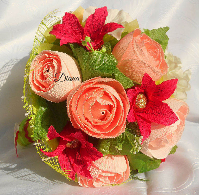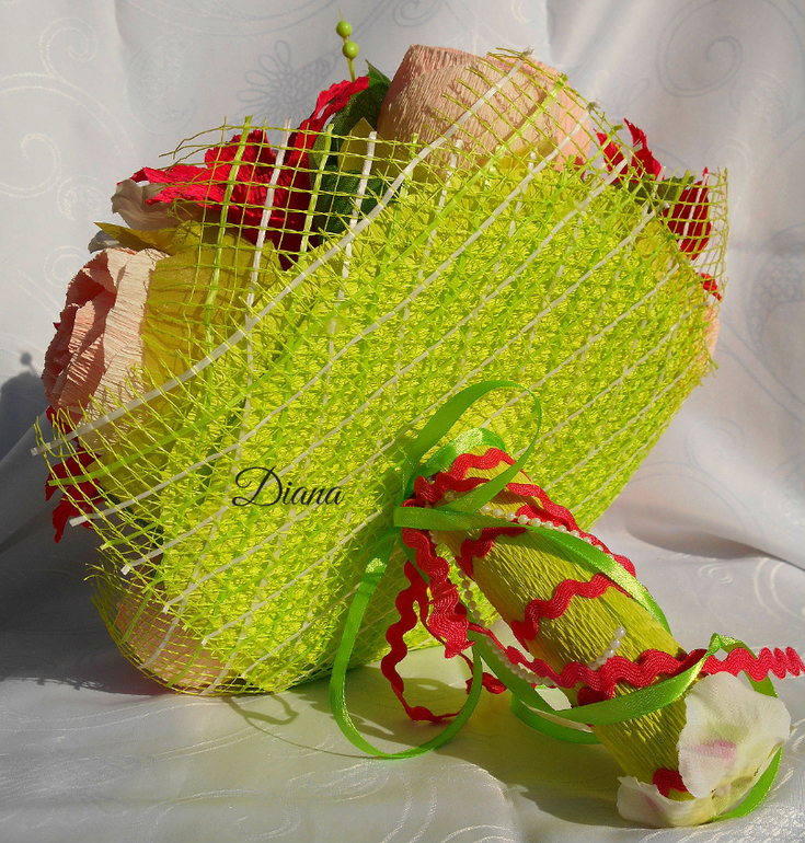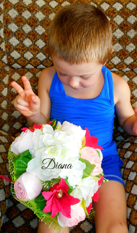 сейчас в гостях у мамы..материала здесь практически нет..букет из того что было...
