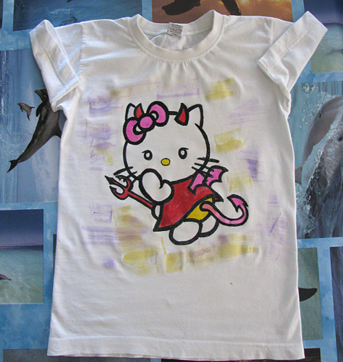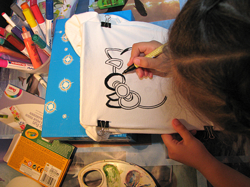 Роспись по ткани, батикТеперь и дочь рисует на футболках. Пусть не теми красками и не в той технике, но надо же с чего-то начинать!