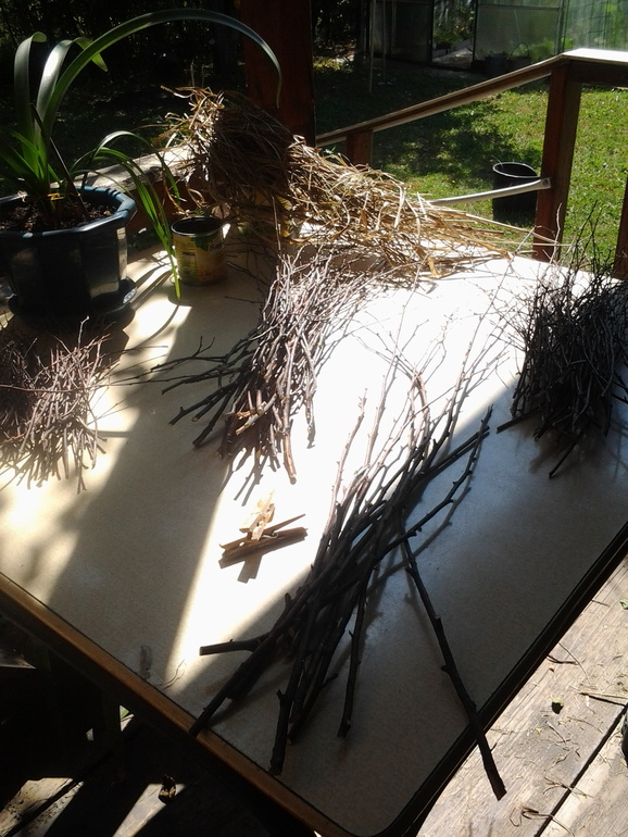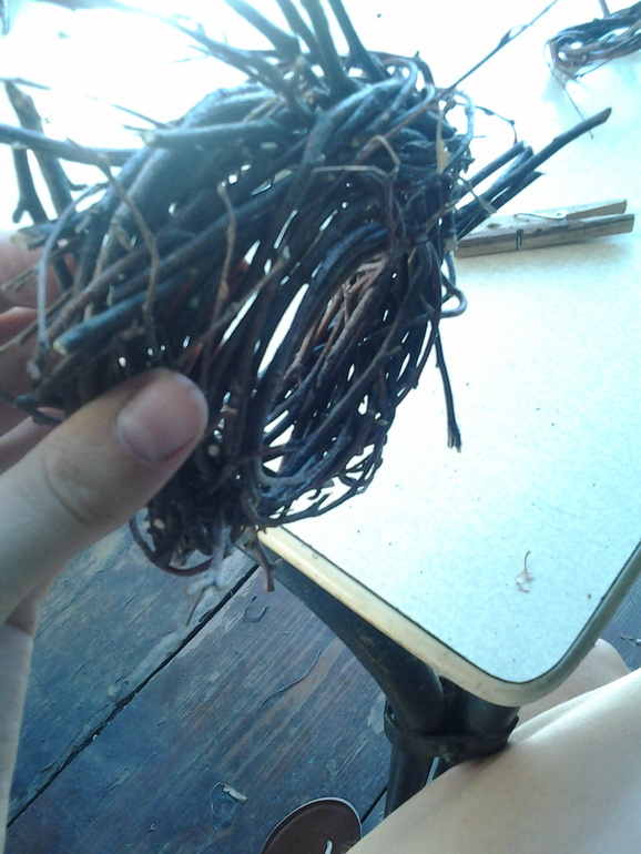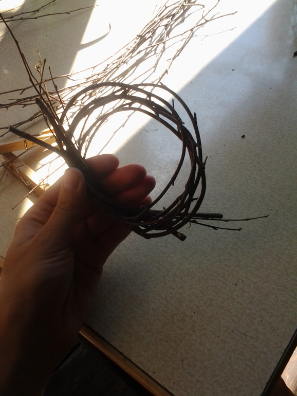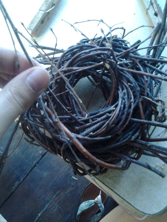 Через пару часиков приступаем к витью гнезда. (у меня некоторые веточки лежали сутки, от этого они не потеряли своей гибкости, но думаю предел у этой гибкости все же есть).