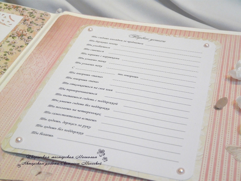 Формат 30*30, 8 разворотов (16 стр), переплет по МК Виноградовой
