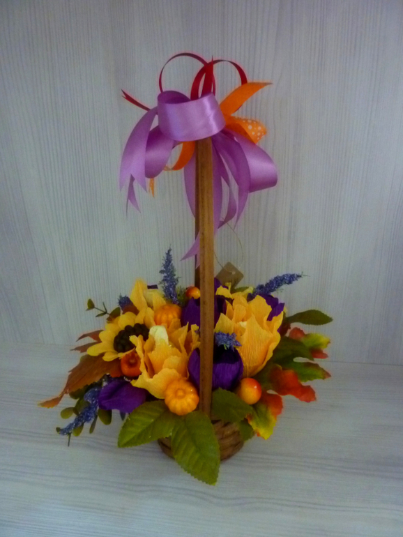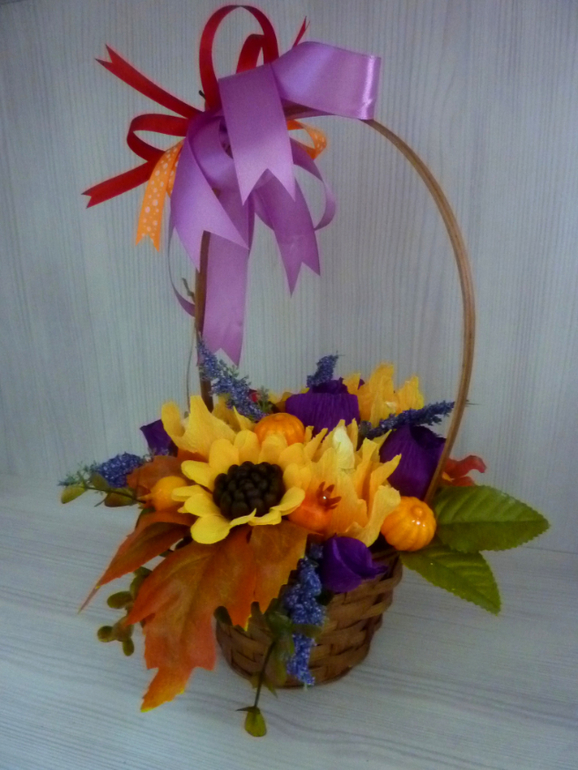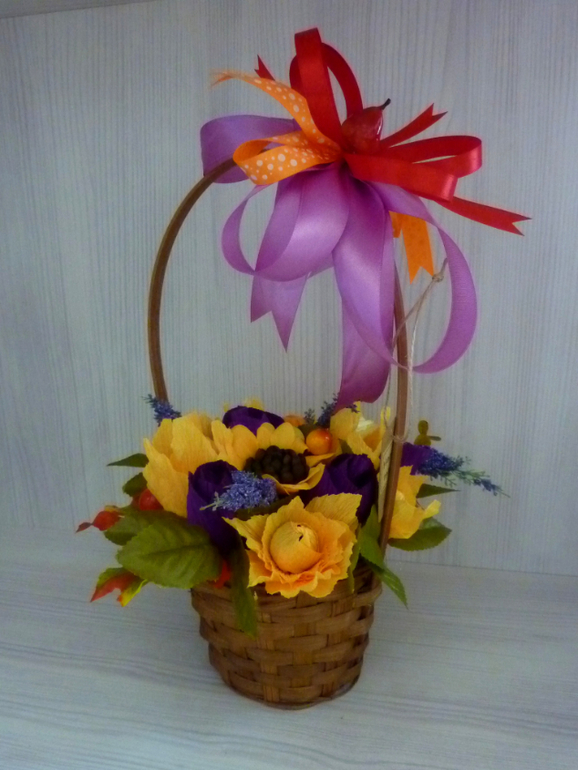 Ира красивая,яркая корзинка!Про бант согласна с девочками,потемнее бы фиолетовый и чуть потоньше...