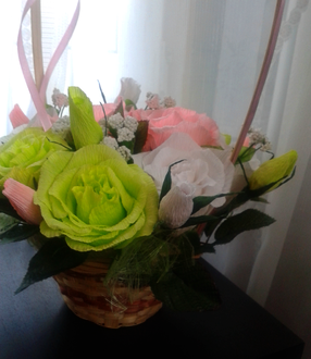 Лилия,хорошая корзинка!Бантик и бутончики бы попышнее...а так хорошо)свеженькая такая)