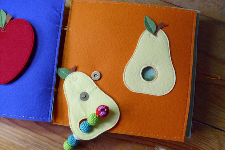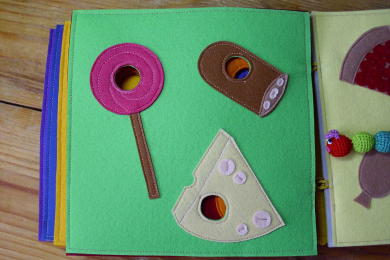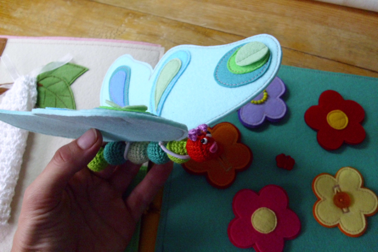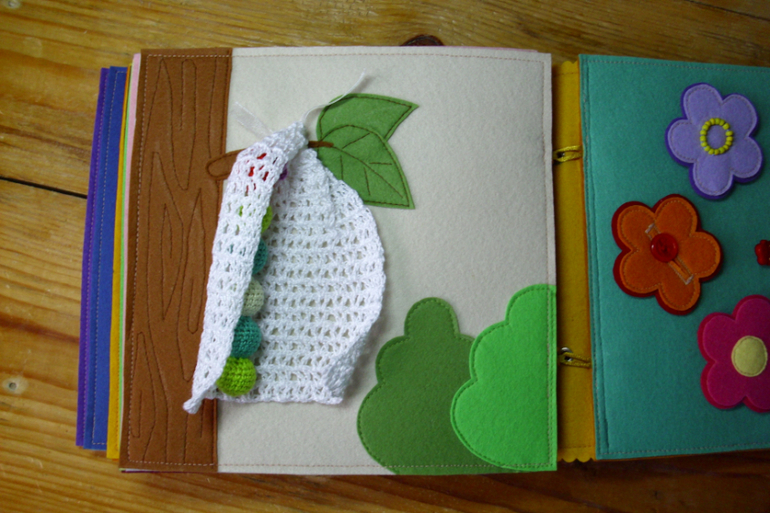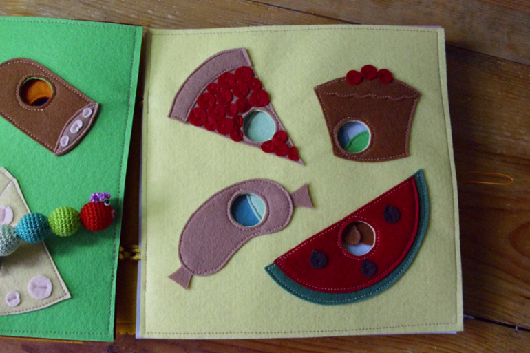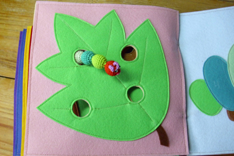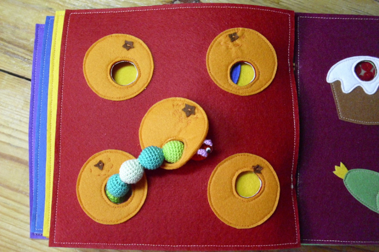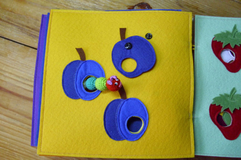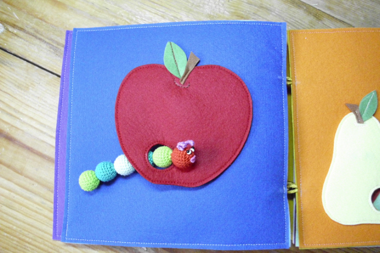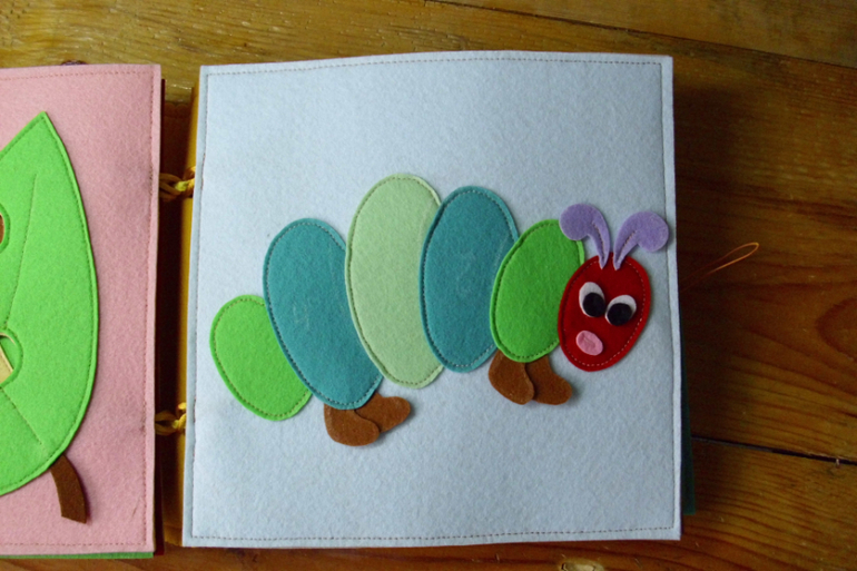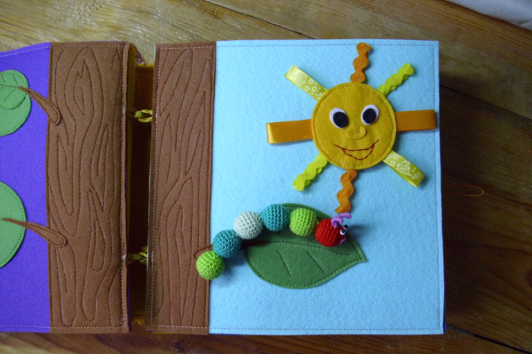 Очень давно хотела сшить книжку про голодную гусеницу.Даже связала гусеничку и она долго у меня лежала,ждала своего часа.Я на нее периодически натыкалась,волна захлестывала.но опять отступала в силу каких-либо обстоятельств.И вот, час настал.Книжка уже у своей новой хозяйки.