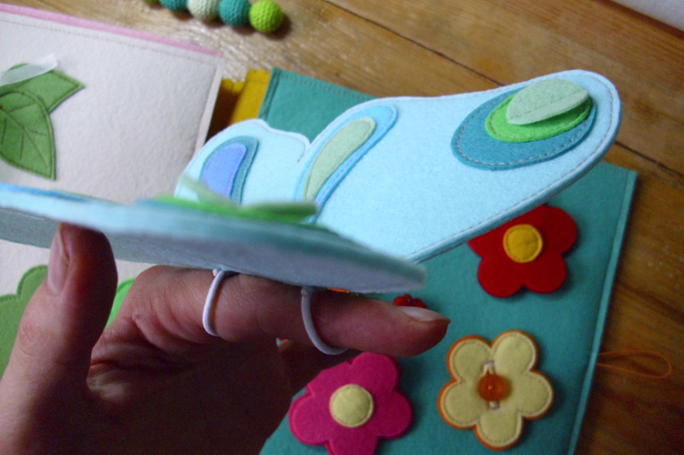 А потом появилась бабочка.Крылышки на резиночках-одеваем их на гусениц