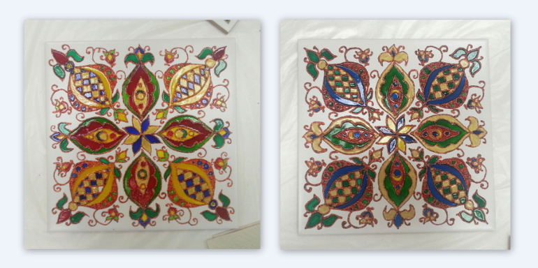А вот ещё три: с разными цветами контуров. Мой фаворит - крупным планом - узор с золотистым контуром.