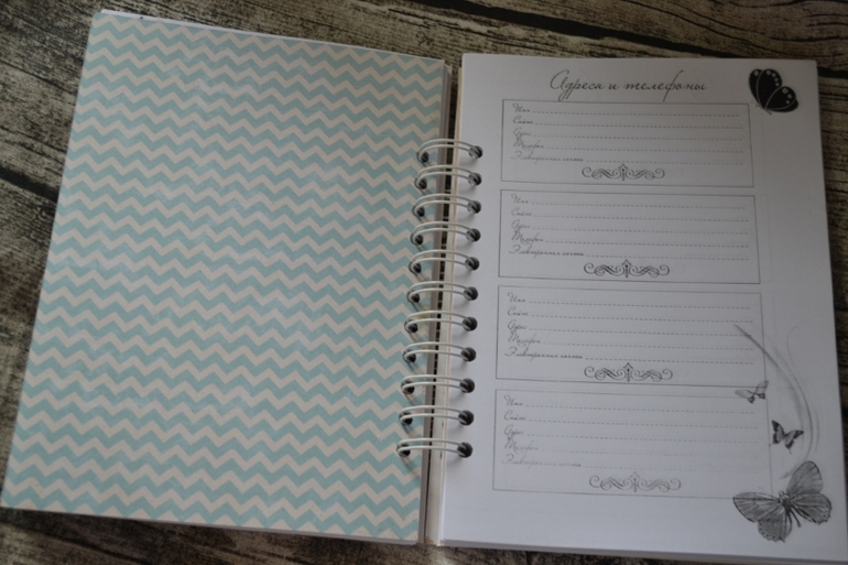 еще один блокнотик для заказиков)))Блокнот на пружинке,обложка картон бумага)))и 4 раздела ,на обложке эмбоссинг