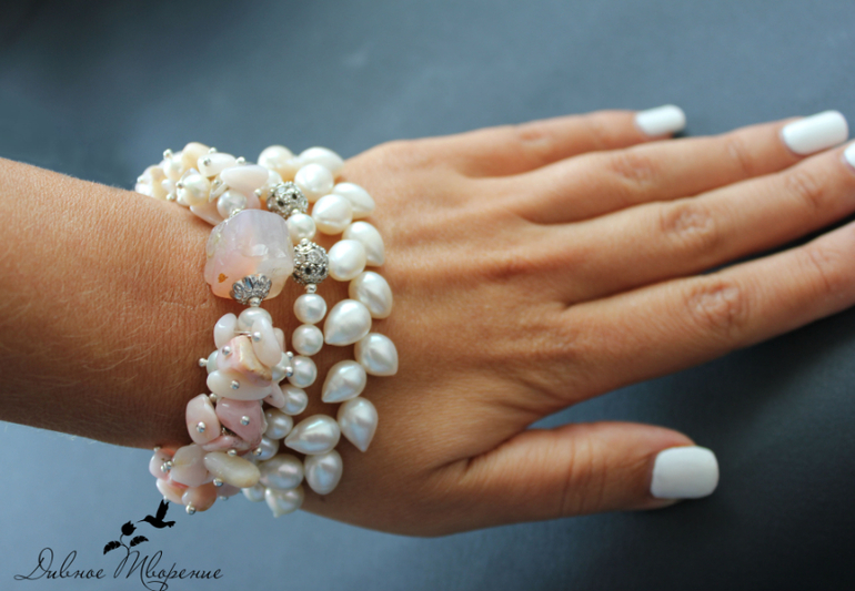 1/ "Глициния" .розовый опал,жемчуг,посеребрение
