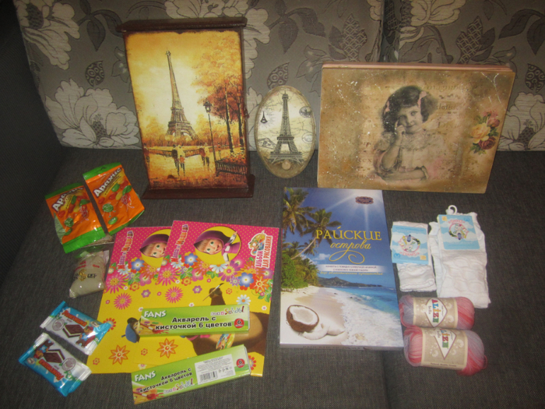Только прибежала домой и стала распаковывать (а Лена не пожалела скотча), пришла знакомая, которой надо было время уделить, чуть от любопытсва не умерла.
