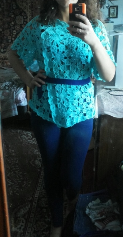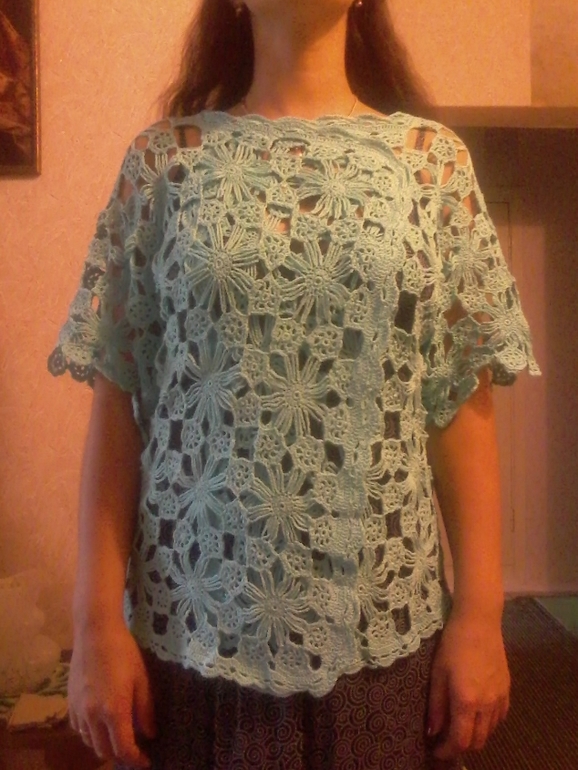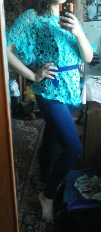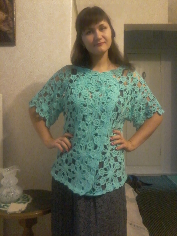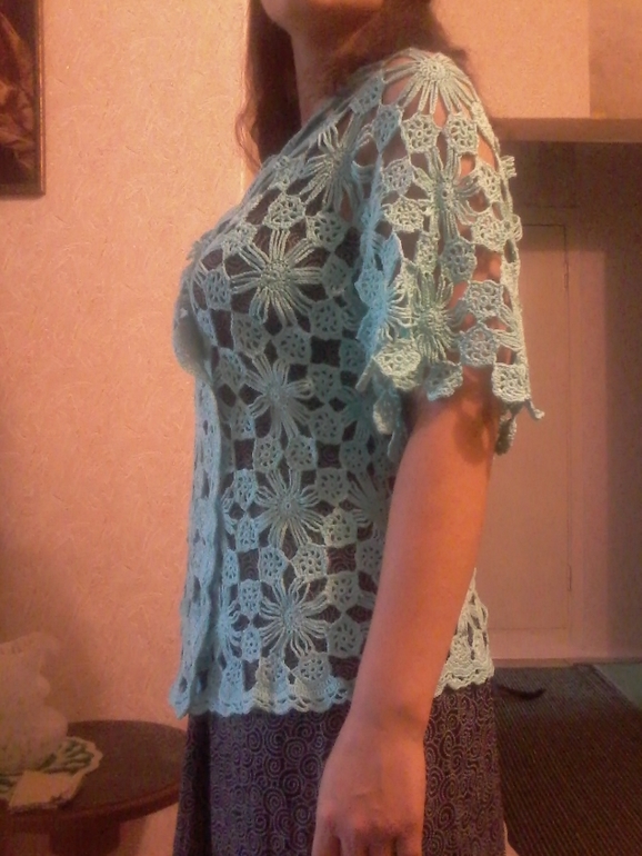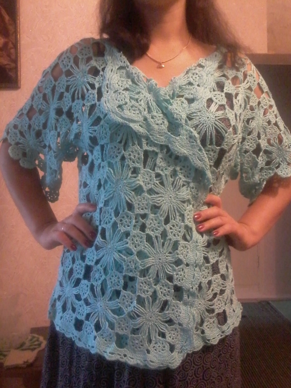 Последний мой долговяз. Летняя, просторная, хлопковая кофточка, для беременной девушки. Пряжа СОСО, ушло 7 моточков.