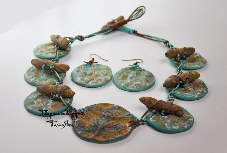Комплект "Воспоминания о лете", сборка на вощеный шнур. Фурнитуры нет, только глина и вощеный шнур. Замочек тогл - также из полимерной глины.