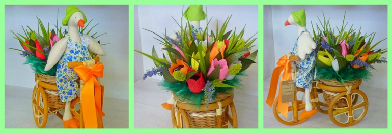 Очень красиво!!! Уточка на велосипеде очень гармонично вписалась!!! И корзина класс!