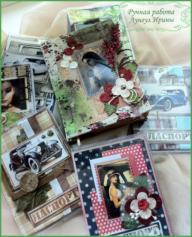 СкрапбукингВот такие обложки для паспортов и блокнотик А-6 формата сделались за 2 дня между заказами...