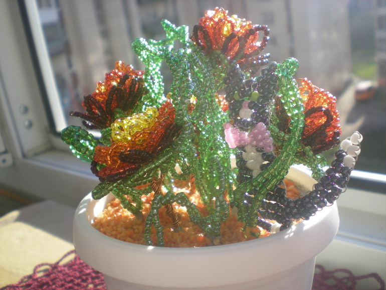 Цветочки из бисера 2 (много фото)