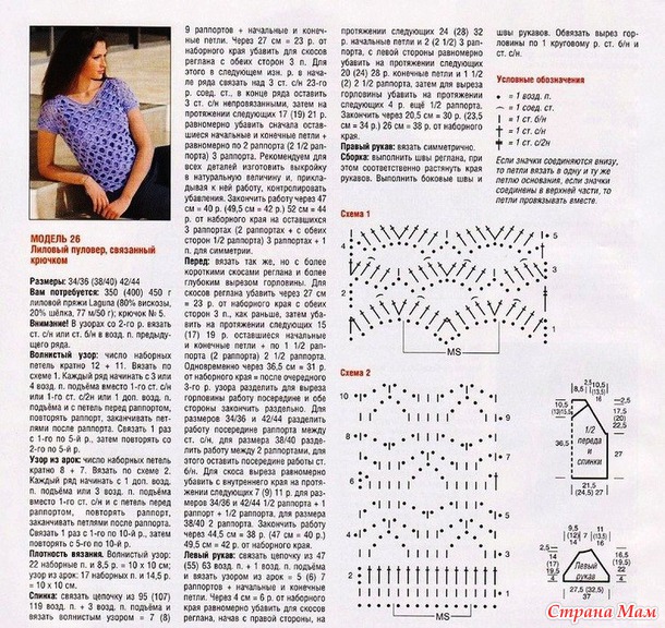Вяжу вот такую кофточку. Описание есть. Довязала до пройм и.... стопор!В описании пройм регланом что-то совсем непонятно описано (может для меня? - я только учусь вязать крючком, это моя вторая работа)