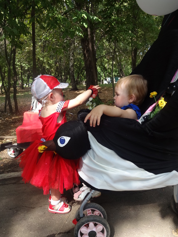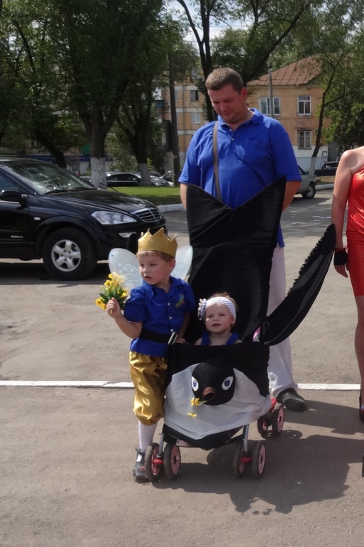Мы участвовали в параде колясок, вот наша ласточка, которая отнесла нашу Дюймовочку в страну эльфов! Король эльфов тоже имеется :)