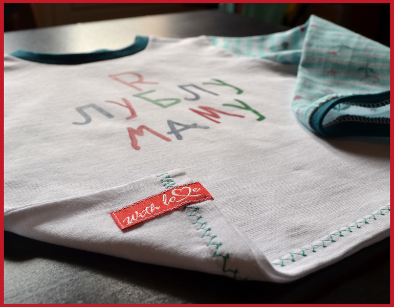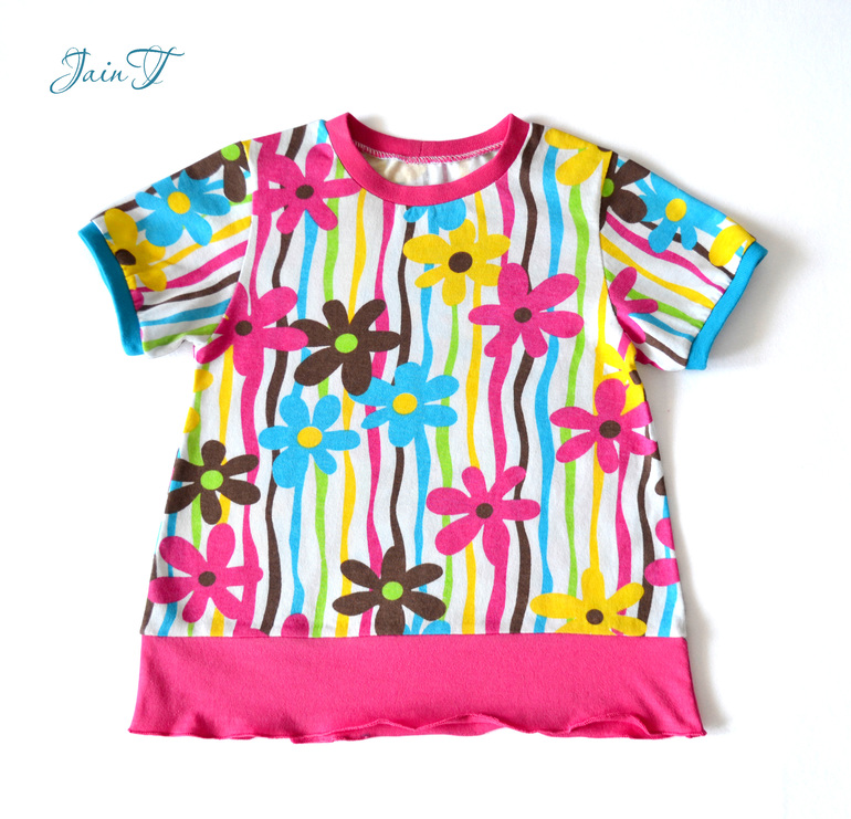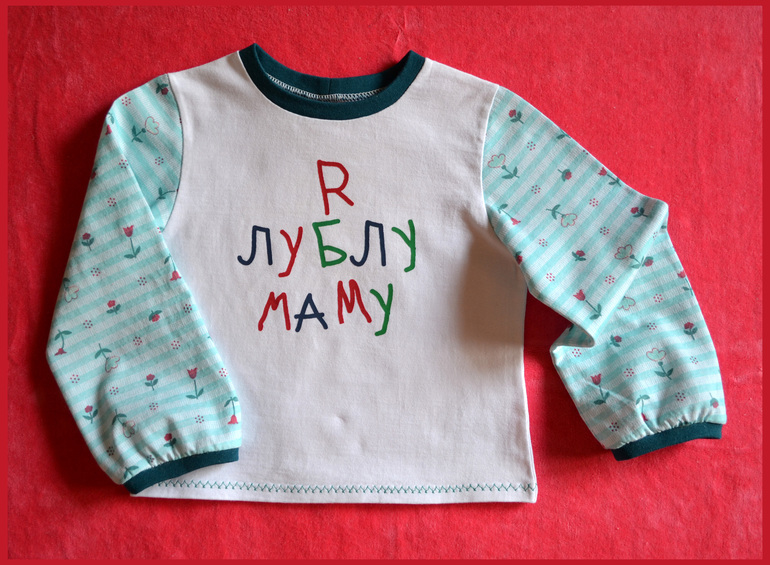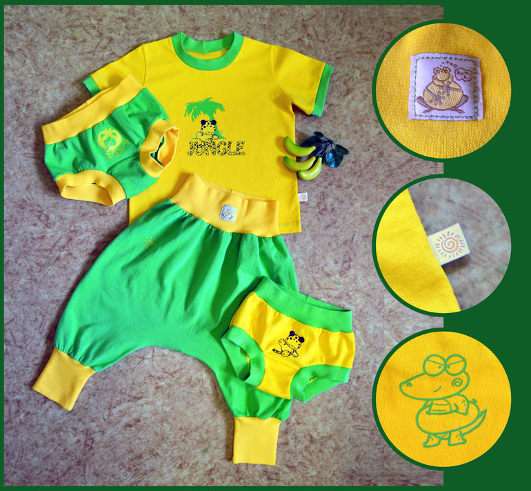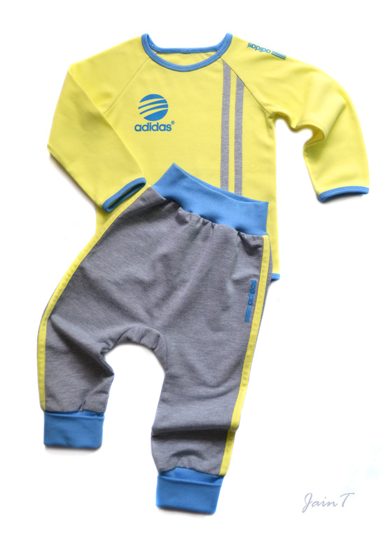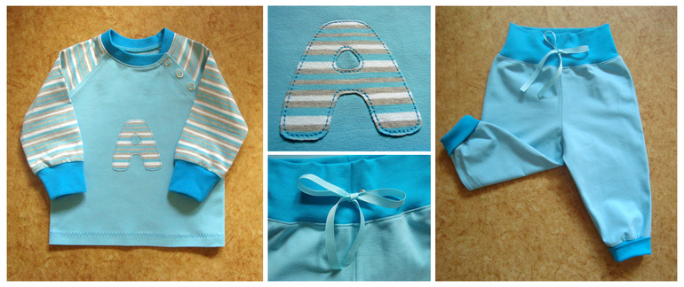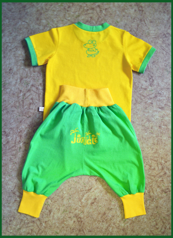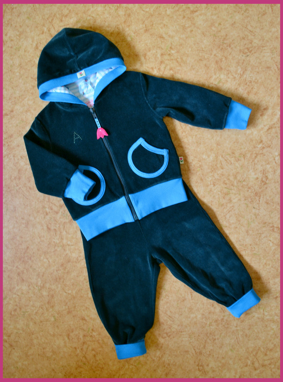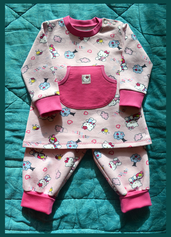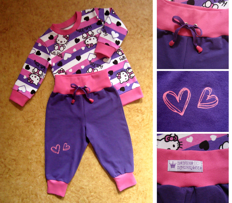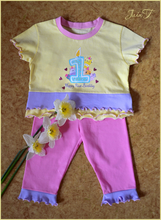 Это вроде первый костюм, пошитый для Аленки из остатков футболок для мужа (без отходное производство:)